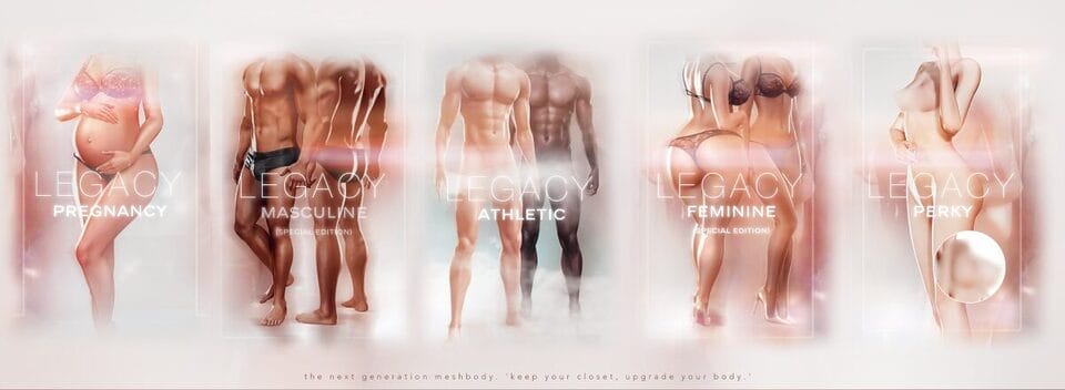 Meshbody recently introduced two new curvier bodies within the Legacy family. These bodies are separate rigs, so clothing creators treat them as their own fits.